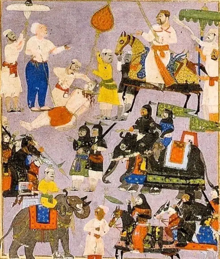 The Deccan Sultans devised a clever ruse to cross the river and strike the Vijayanagara forces. Two or three times, they pretended to retreat, creating the illusion that they could not cross. Misled by this tactic and careless in their defence, the Vijayanagara army advanced across the river. On Tuesday, 23 January, the two armies finally clashed. At a critical point in the war, the Vijayanagara army suffered a severe setback when the Gilani Brothers—Muslim commanders serving in its ranks—defected to the Sultanate side. Their betrayal caused a dramatic collapse in both morale and military formation. Adding to the crisis, Bijapur Sultan Adil Shah, who had earlier promised to remain neutral, entered the battlefield against Vijayanagar. With the situation completely reversed, Ramaraya’s forces were decisively defeated.