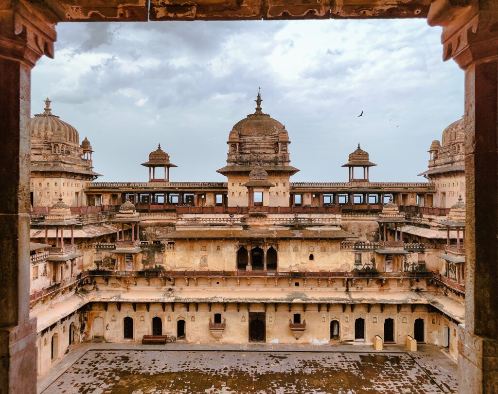 During his rule, Bir Singh Deo became a prolific patron of architecture and Hindu religious sites. He constructed palaces, temples, and gardens in Orchha. Notably, his grandest project, Jahangir Mahal, was built in Datia for Jahangir, who visited and spent a night there. Datia lies about 50 km from Orchha and 75 km from Gwalior, in Madhya Pradesh.